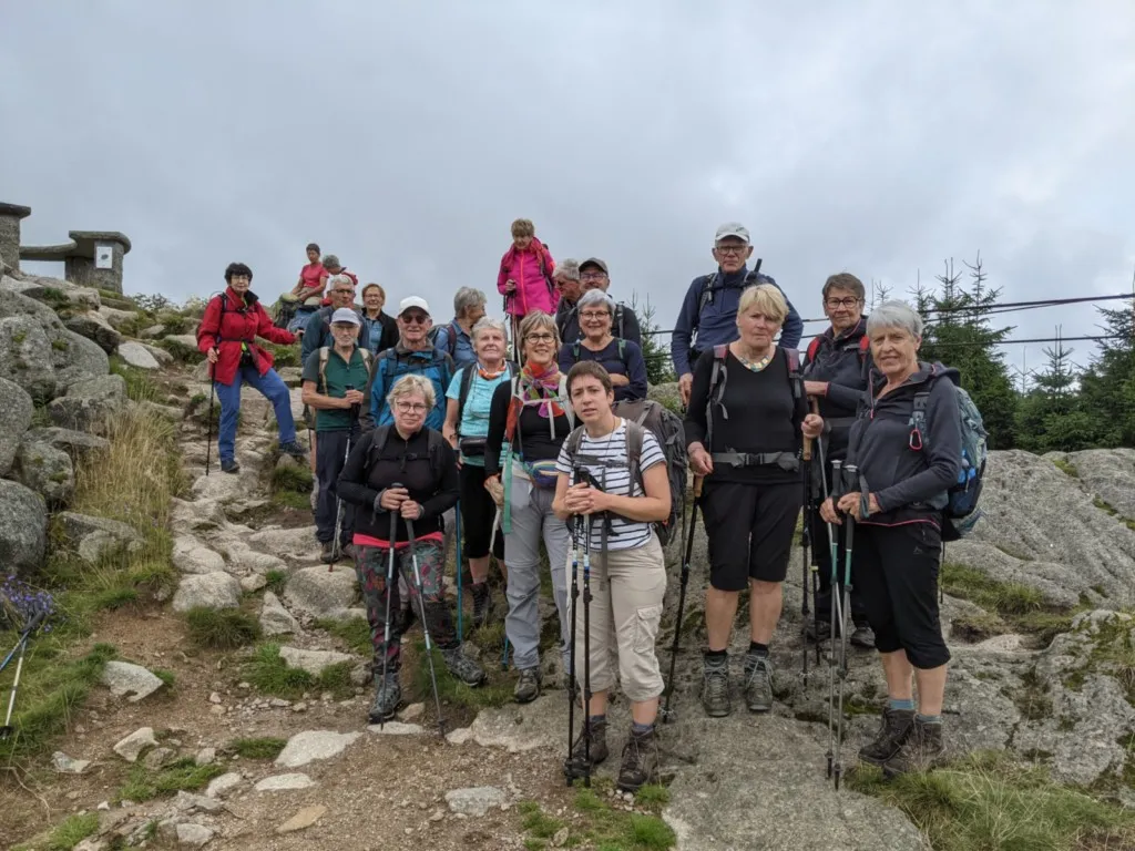 Ce dimanche, nous sommes 9 marcheurs à prendre le départ au niveau de l’Etang des Fées à Saulxures, malgré une météo très mitigée… Nous nous dirigeons vers le Haut du Comte où nous pouvons tout de même apprécier la vue qui s’offre à nous à ce moment-là sur Thiéfosse et Cornimont. Puis, nous enchaînons la montée par la Tête de Zéfeut, le col de Lauvy et nous nous dirigeons vers le col de la Croix des Moinats. Entre-temps, nous avons croisé des cyclistes de la rando VTT de Saulxures, que nous avons encouragés vu l’alternance de soleil, de pluie et de vent et l’état des chemins !! Quand nous arrivons au col des Hayes, il est midi et nous profitons de l’abri du feu de St jean pour manger au sec et c’est là que le soleil se décide enfin à rester avec nous.