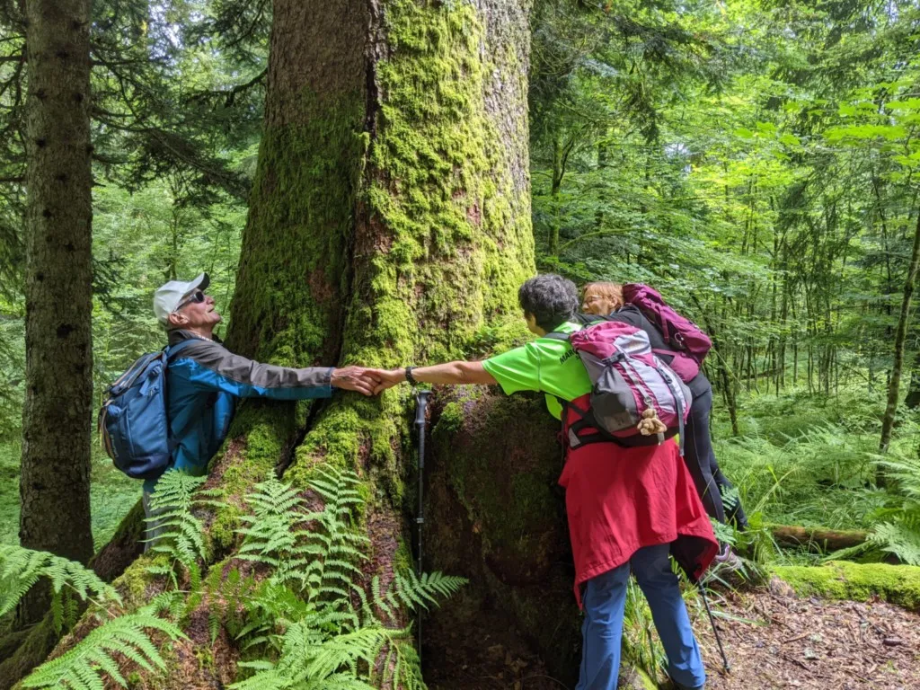 Ce parcours nous emmène le long des champs de colza, devenus tout jaunes par leurs fleurs, dans la forêt où subsistent où de nombreux vertiges de 1870 : tombes, monuments aux morts, bunkers recouverts de végétation, sur les anciens champs de bataille. La randonnée se termine par le magnifique hêtre des batailles, hêtre exceptionnel lié aux combats de 1870. Nous avons bien échangé et bien sympathisé avec nos amanvillois et envisageons leur venue dans les Vosges à l’avenir.