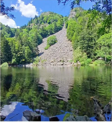 ou lac de Soultzeren, lac naturel à 1053 m. Sa coloration est due à la prolifération d’une algue