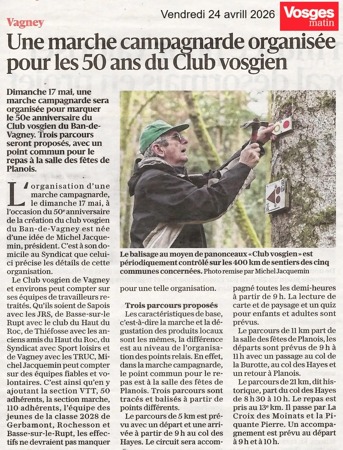 Travaux de création, de balisage, d'entretien des itinéraires de randonnée pédestre