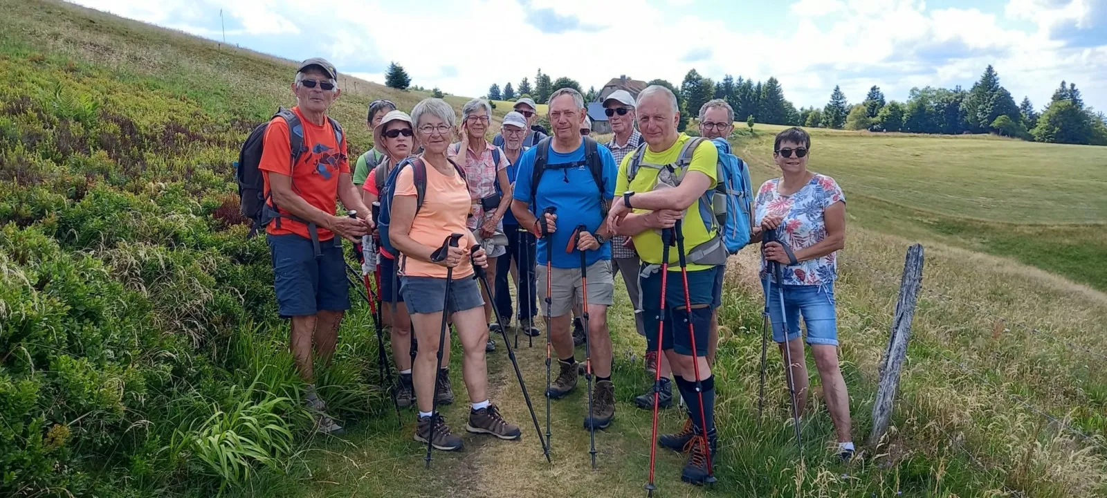 Et enfin nous redescendons vers la vallée en passant par Ringelbach, Dickgras, toujours en profitant du magnifique paysage qui s’ouvre devant et autour de nous. De retour au parking, nous nous installons tranquillement à une table et nous partageons les brioches et le gâteau au chocolat faits par Cathy et nous profitons des boissons fraîches proposées par Michel. Tout le monde était ravi de cette journée, parcours et météo au top.