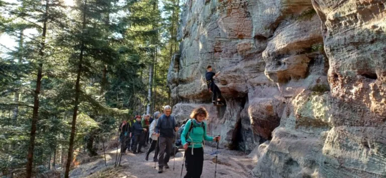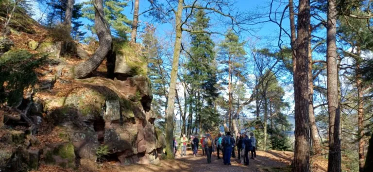 Roches et puis nous entamons notre descente en passant par la Roche Fendue. En arrivant au Musée du Bois, nous reprenons le circuit des Etangs où nous pouvons apercevoir quelques nénuphars déjà en fleurs. Et retour à l’Etang des Fées où nous apprécions notre goûter bien mérité !!